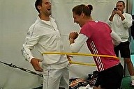 Letošní Wimbledon zatím každý hrací den narušil déšť. Tenistům pak nezbývá nic jiného, než v útrobách stadionu čekat na lepší počasí. Otázkou je, jak se v takové chvíli zabavit. A kdo jiný by měl vymýšlet zábavu, než známý šprýmař Novak Djokovič. Podívejte se, jak se s Andreou Petkovicovou pokouší o tandemové 'hula hoop'.